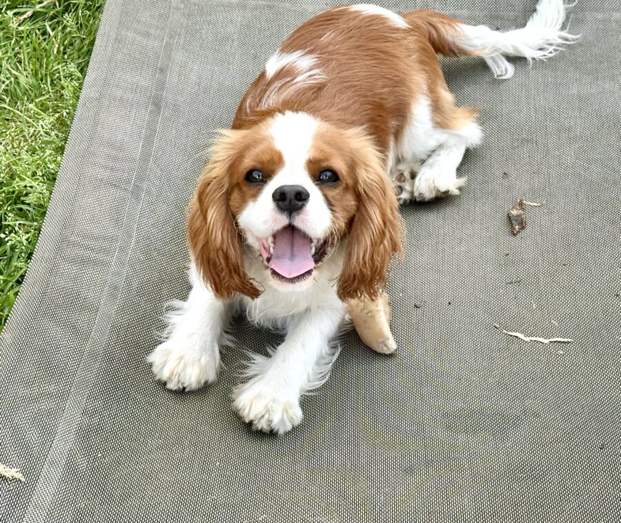 Toby, mein erster blenheim Cavalierrüde, hat mein kleines Rudel in der Struktur komplettiert. Für die Mädels ist er ein wichtiger Teil unseres kleinen Rudels geworden. Er hat ein gutes Temperament, ist freundlich und dabei sehr leichtführig. Toby hat ein traumhaftes Wesen und zeigt sich auch im Ausstellungsring vielversprechend und ist freudig und mit Begeisterung dabei.